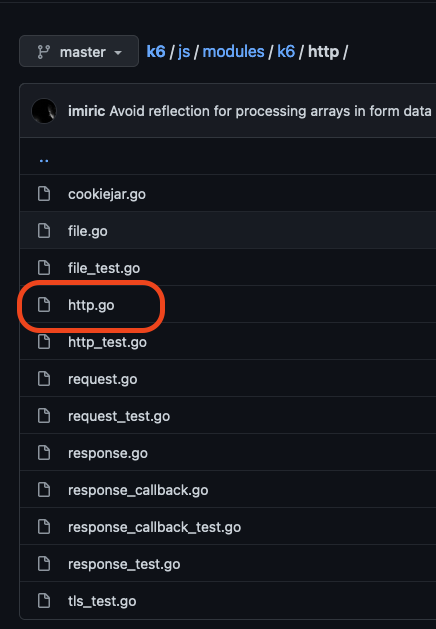 사용법에서 공식 사이트 링크에보면, import http from 'k6/http' 코드가 있습니다. 이는 Javascript에서 제공하는 코드가 아닌 k6 프로젝트에서 제공하는 함수로, "js" 폴더에 들어가면 있게 됩니다.